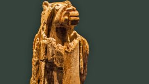En 1939, en una cueva en Alemania, se descubrió el Hombre-león. Es una escultura hecha en marfil, con alrededor de 40.000 años de antigüedad, mide 29,6 centímetros y representa el cuerpo de un hombre con cabeza de león. No es un hombre con una mascarilla; no, es un ser fantástico, producto de la imaginación. Se parece a otras figurillas que se han encontrado en cuevas aledañas, se presume que de la misma época. En la figurilla del Hombre-león hay expresión en la mirada, una ejecución técnica asombrosa y la demostración de un ejercicio intelectual de representación simbólica y creatividad que corresponden a una mente creadora, nada ingenua y, digamos que, sofisticada. El trabajo escultórico es minucioso. Los estudiosos de la pieza han hecho experimentos con las herramientas que se supone usó el fabricante, y consideran que hacer la pieza pudo tomar 400 horas de trabajo, para una persona con experiencia.