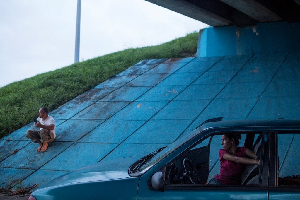 Luis Rodríguez Pérez, de 28 años, se sentó bajo el puente de la autopista para hacer una videollamada a su hermano en Búfalo, Nueva York. Su esposa estaba a unos metros de él, en el asiento del pasajero de su sedán.