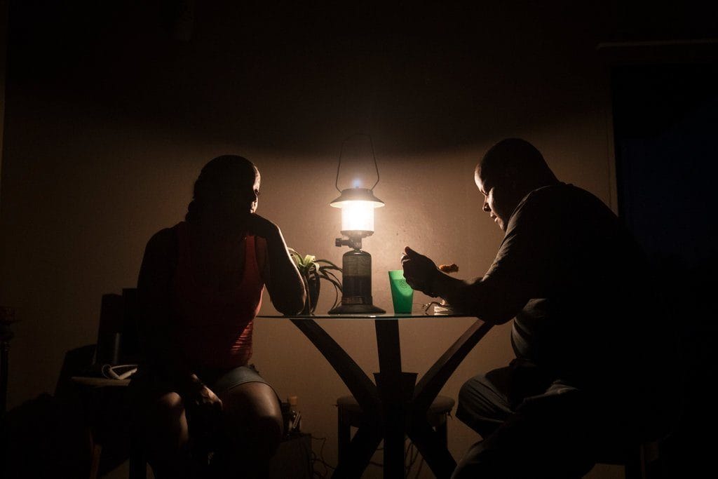 Pérez evaluó sus opciones para obtener luz en las sombras de su apartamento; decidió conservar las dos velas que le quedan y en vez de eso usar el gas restante en su linterna de campamento verde. Giró la perilla y la luz parpadeó, con lo que llegaron las tinieblas a la cocina.