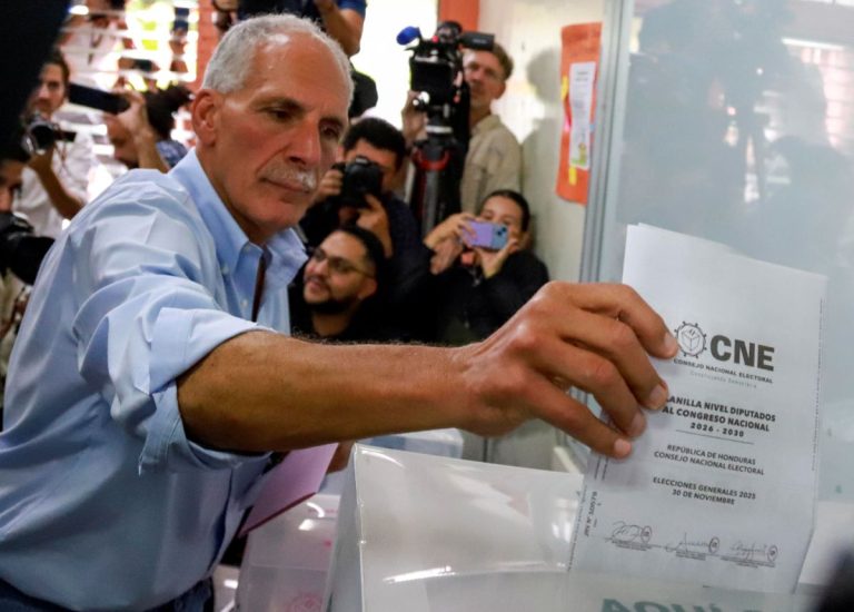 El candidato a la Presidencia de Honduras por el Partido Nacional, Nasry Asfura, deposita su voto en una urna en Tegucigalpa, el domingo 30 de noviembre de 2025. | Foto: EFE/STR