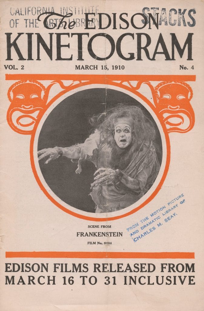 It took the medium of film to jolt Shelley’s archetype fully alive, starting with the first screen version, from Edison Studios, in 1910. Credit California Institute of the Arts Library Special Collections