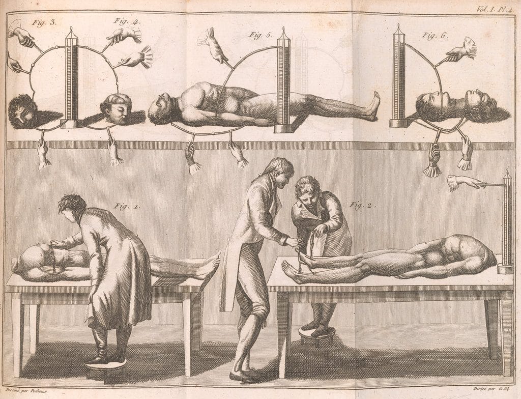 Aunque la novela es vaga acerca de cómo Victor Frankenstein da vida a su monstruo, Mary Shelley estaba familiarizada con los experimentos de «electricidad animal» de Luigi Galvani y su sobrino Giovanni Aldini, que se muestran aquí en un grabado de 1804. Crédito The Morgan Library & Museum