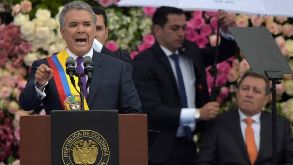 Duque dijo ante cientos de invitados en la Plaza de Bolívar, en Bogotá, que llega a la presidencia de la nación sudamericana con el objetivo de “superar las divisiones de izquierda y derecha” y “con el espíritu de construir y nunca destruir”.