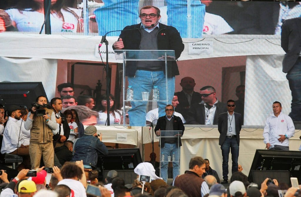 Timoleón Jiménez, Timochenko, fue el máximo dirigente de la insurgencia y ahora aspira a encabezar un “Gobierno de transición” que pretende representar “los intereses de los pobres”, poner fin “a la mano asesina en la política colombiana” y, en definitiva, darle la vuelta al sistema. Rodrigo Londoño, este es su nombre real, apeló al “concurso de millones de compatriotas” acompañado de la candidata a la vicepresidencia, la activista Imelda Daza, y de Iván Márquez, número uno de la lista al Senado. Pero lo hizo ante unas 200 personas, quizá 300 o algo más en algunos momentos del acto, entre las que figuraba la estructura de apoyo con la que cuenta la formación en la ciudad. El candidato se sitúa en la cola de las encuestas, con un porcentaje en intención de voto que va del 1% al 2%, aunque goza de mayor aprobación en algunas zonas rurales.