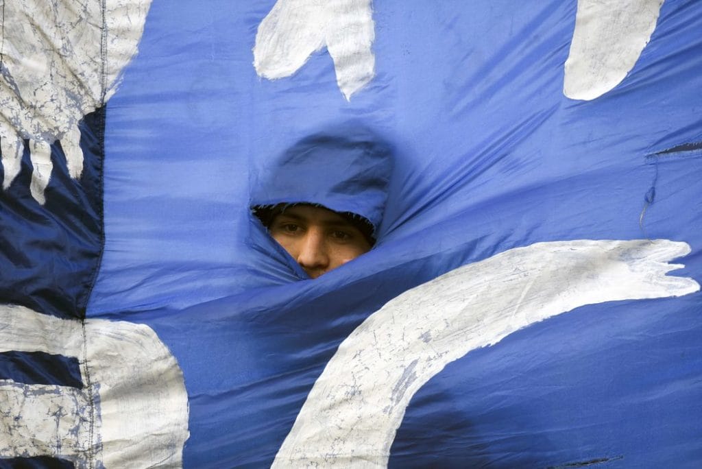 Un manifestante se sumó a una protesta masiva, en junio de 2018, que partió de la provincia de Argentina a la Plaza de Mayo en Buenos Aires para rechazar el crédito del Fondo Monetario Internacional. Credit Eitan Abramovich/Agence France-Presse — Getty Images