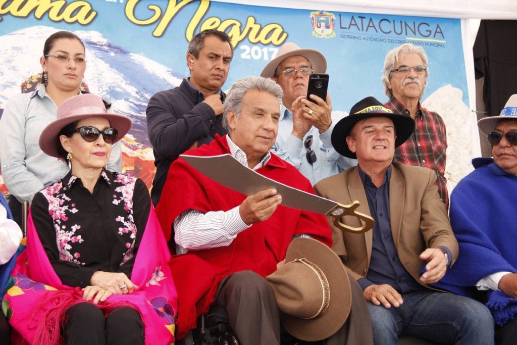 El presidente ecuatoriano Lenín Moreno, en el centro, el pasado sábado en el desfile de la Mama Negra, en Latacunga (Ecuador). EFE