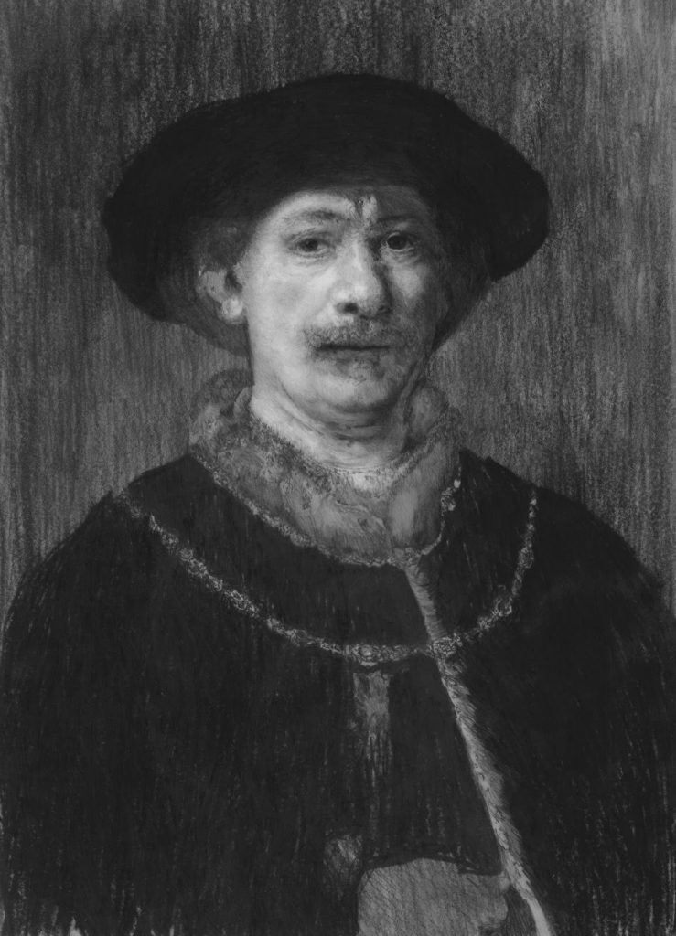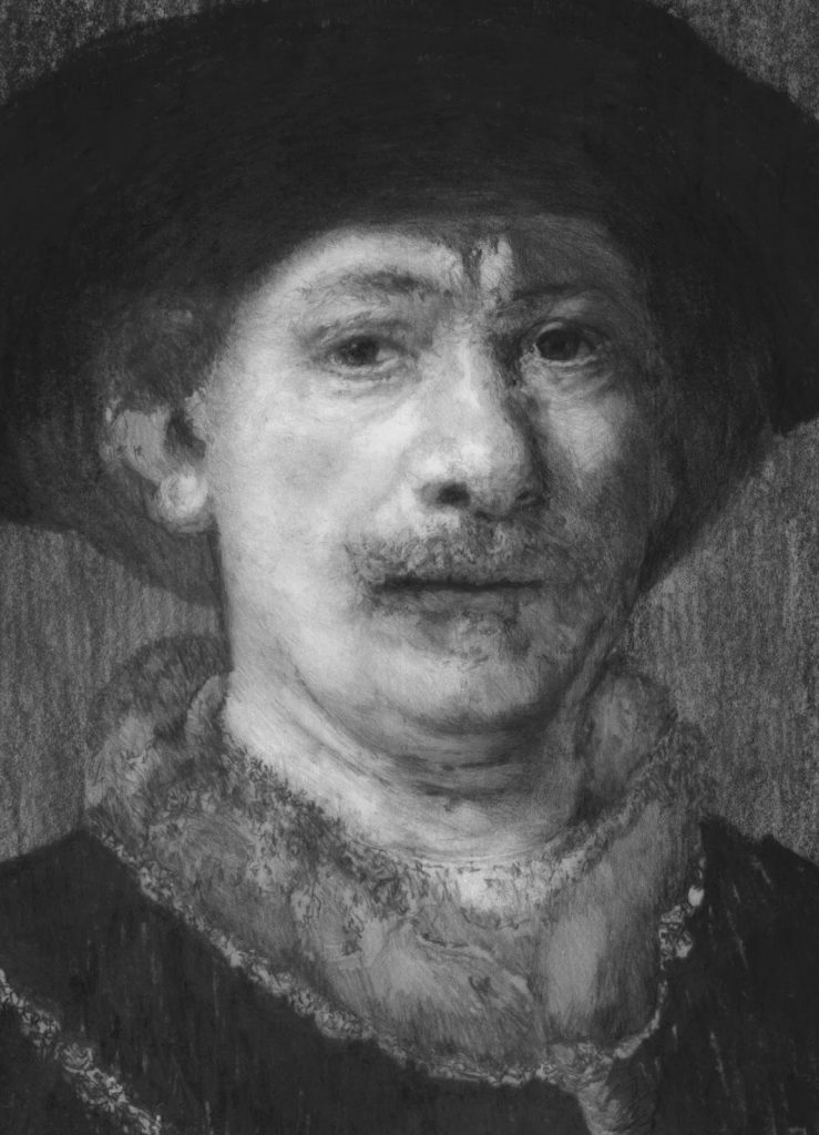 Nos ponemos delante del Rembrandt y aunque ahora solo dispones de la copia a lápiz que he dibujado para este artículo, nos servirá hasta que tengas el cuadro delante (Figura 1).