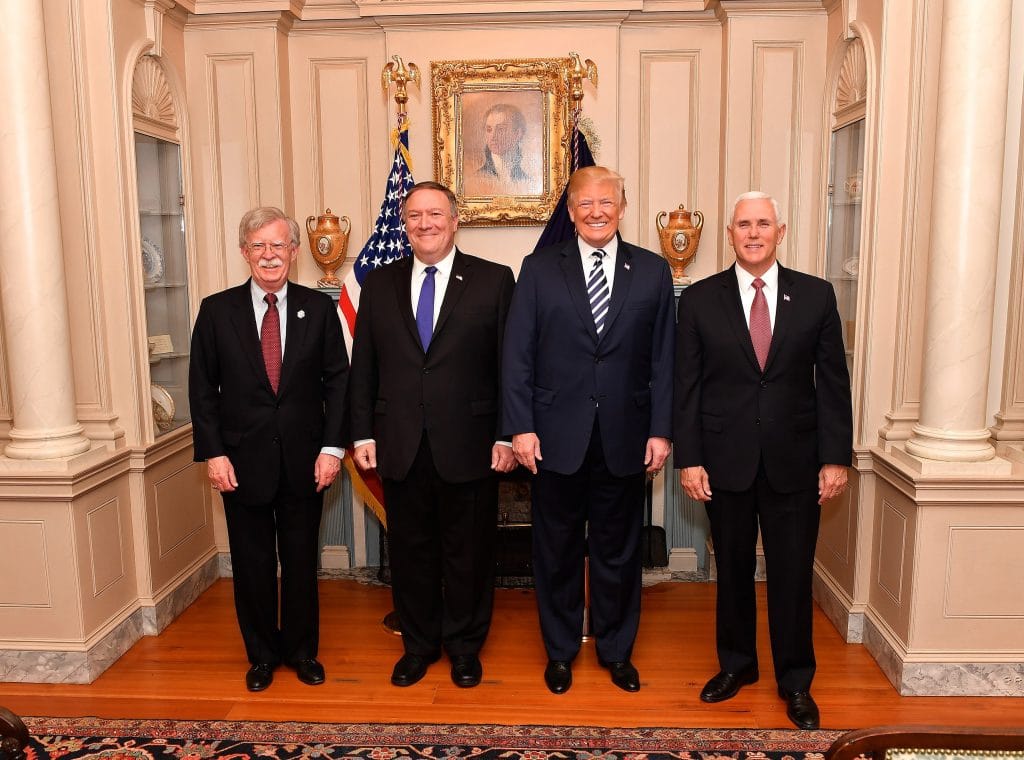John Bolton, Mike Pompeo, Donald Trump, and Mike Pence (State Department)