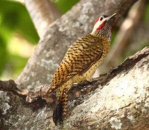 El Carpintero Pechipunteado, así llamado por su pecho amarillo con abundantes manchas. Se encuentran en áreas abiertas; taladran troncos y ramas y ocasionalmente bajan a tierra para buscar hormigas. Residente poco común en los bordes de bosques de galería, vegetación secundaria y manglares.