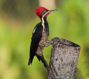 Ahora veamos los Carpinteros Reales, convertidos en símbolo mundial del grupo gracias al “Pájaro Loco” de los comics. Los más comunes en Venezuela, aunque de diferentes géneros, son muy similares. Grandes (c. 33 cm.) con predominio de los colores negro, rojo y blanco, sus fuertes tamborileos permiten diferenciarlos.