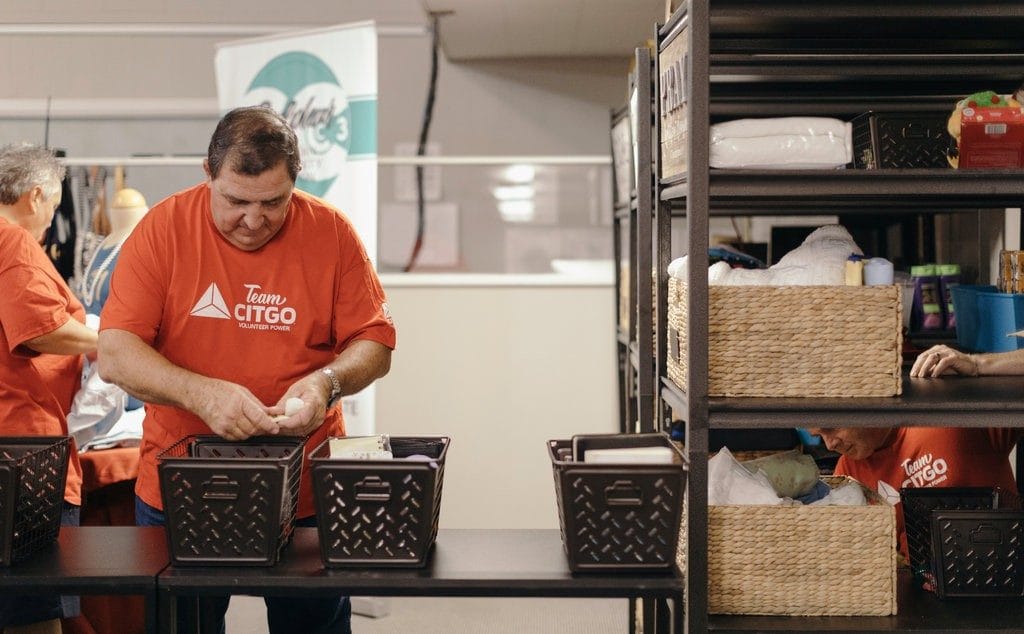 Volunteers from Citgo, which prides itself on its service projects, sorting donated goods at a community center in Sulphur, La. Credit Todd Spoth for The New York Times